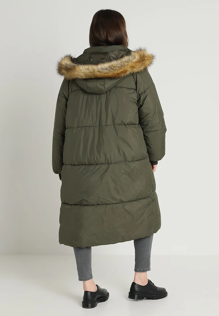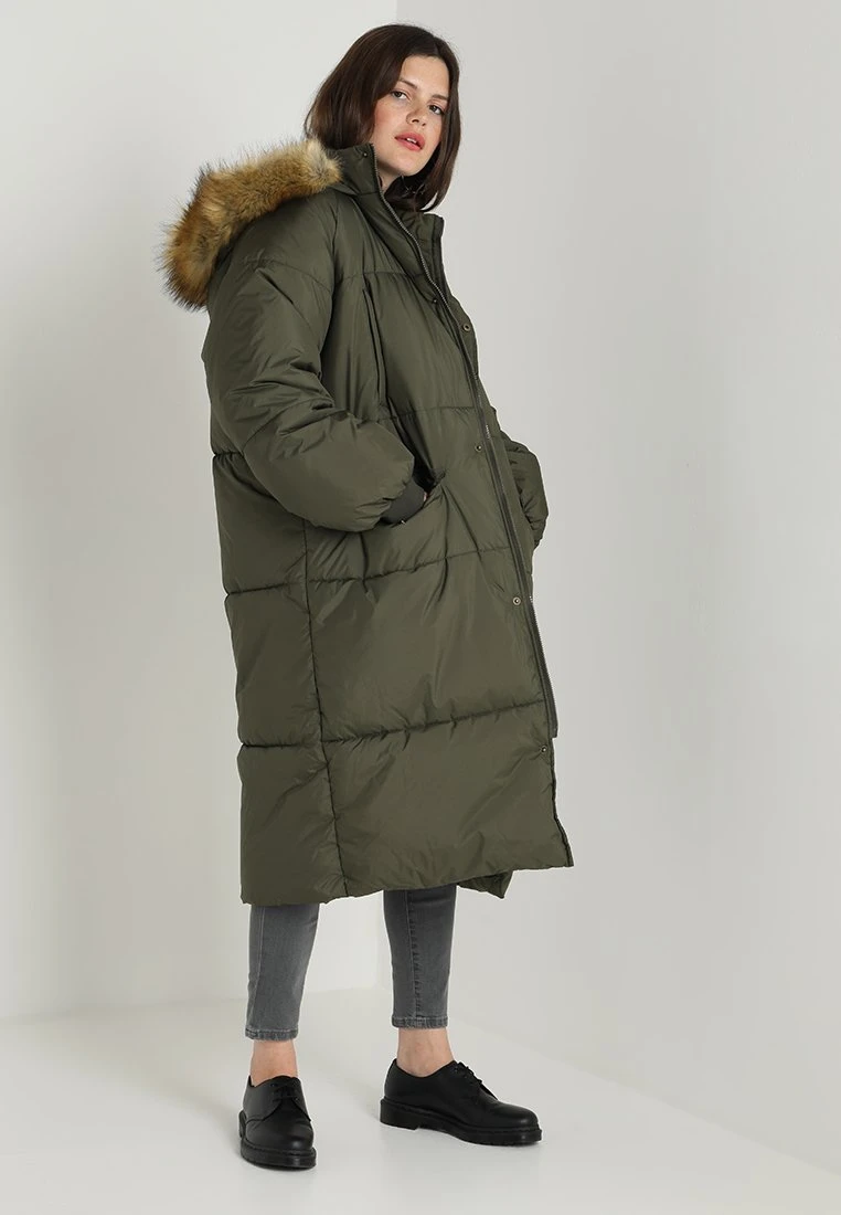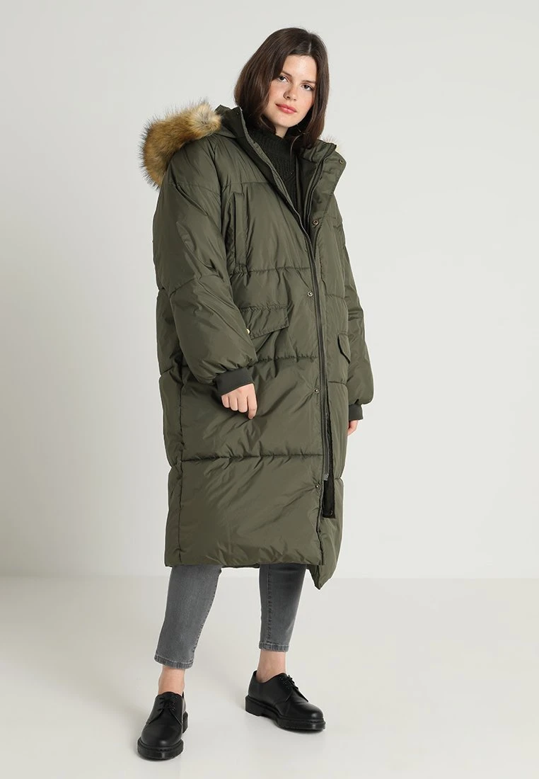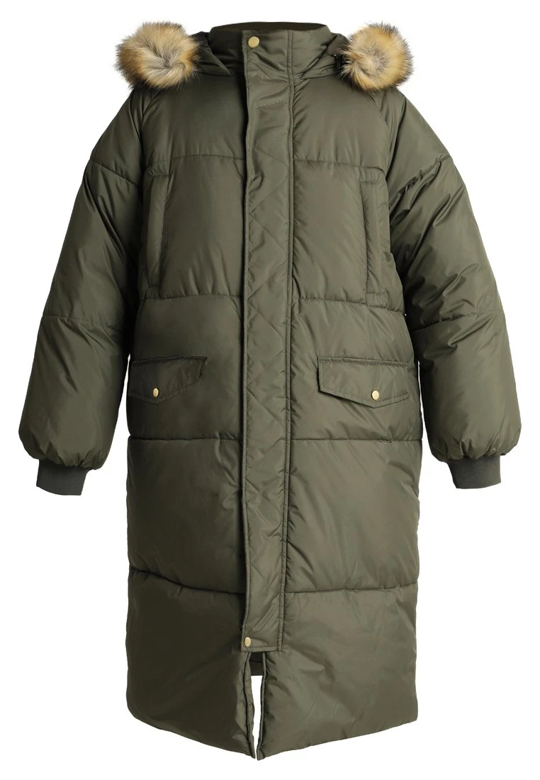 Ladies Oversize Puffer Coat – Winterjas – Darkolive/Beige