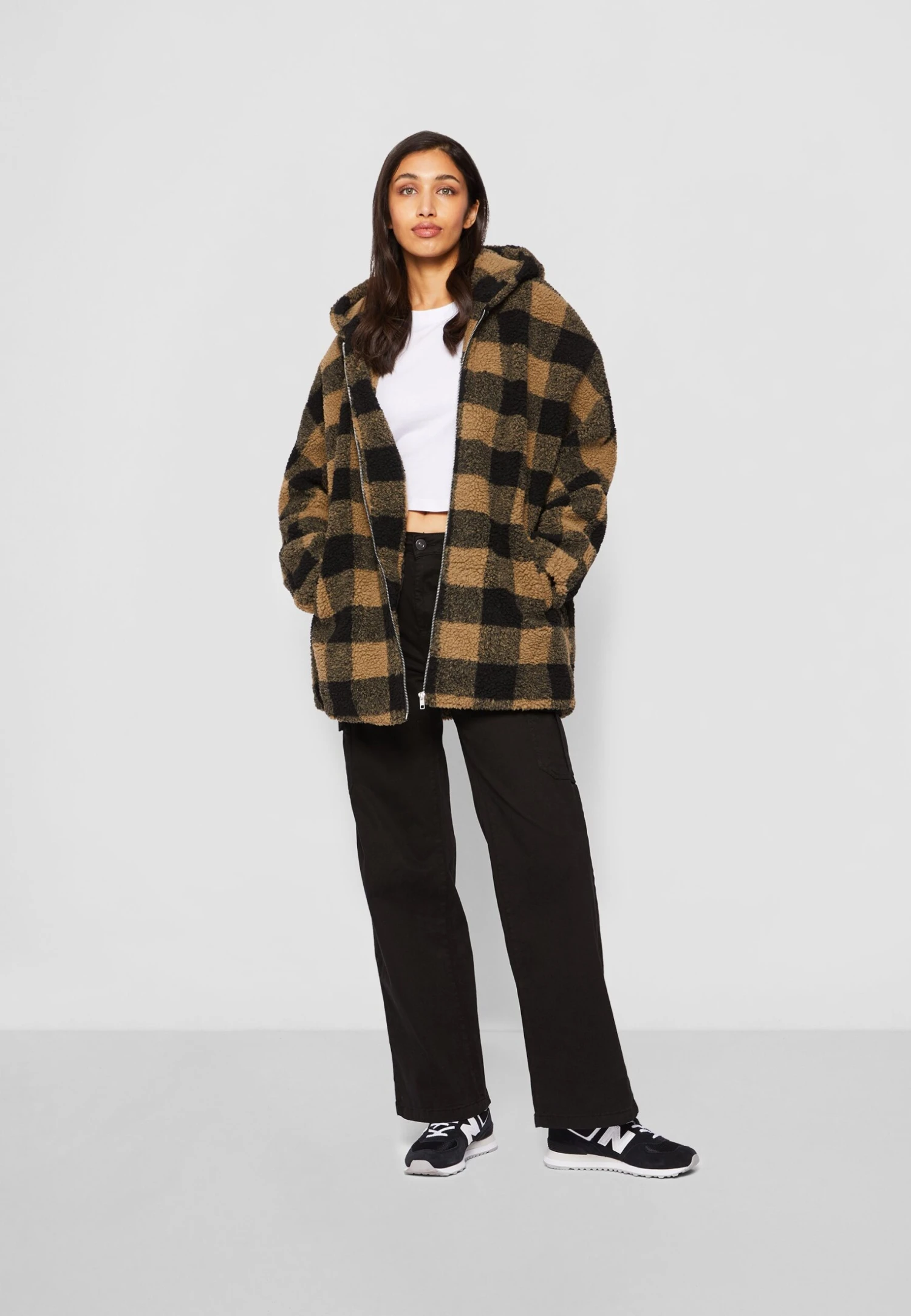 URBAN CLASSICS Check Sherpa – Winterjas – Softtaupe/Black