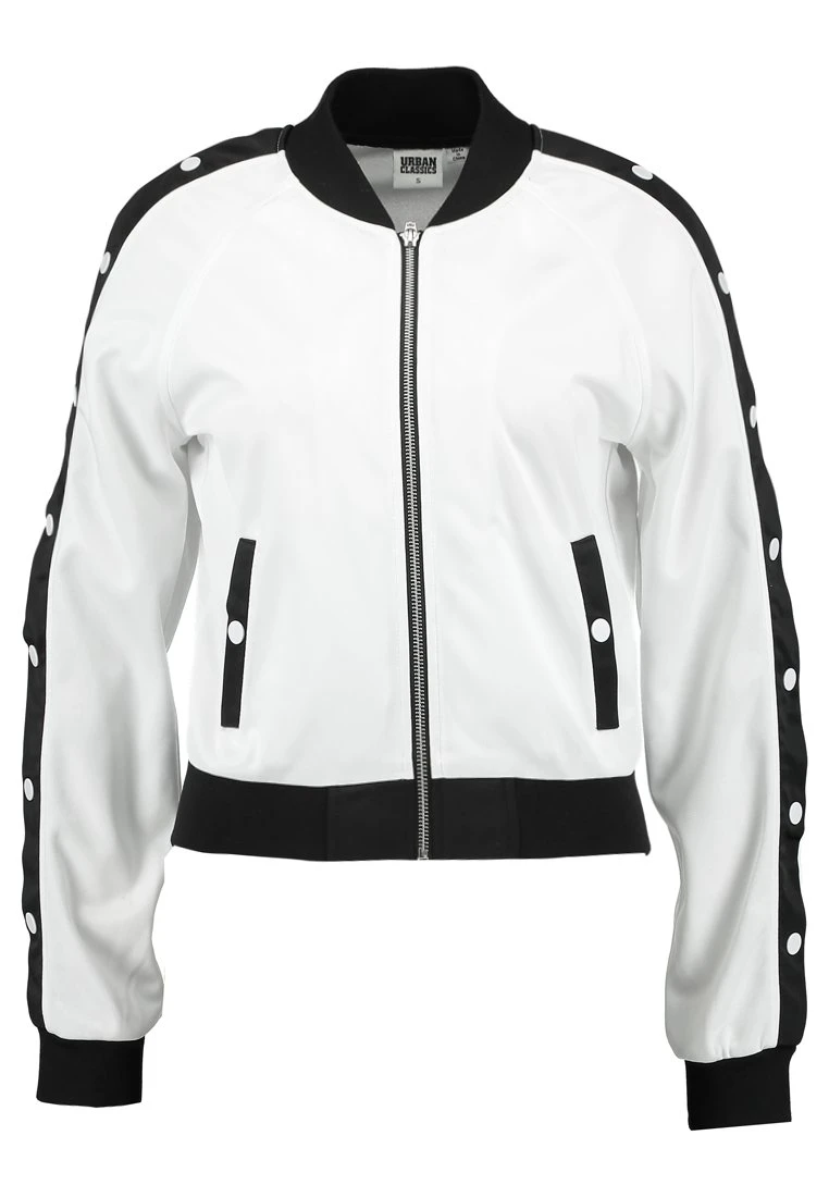 URBAN CLASSICS Ladies Button Up Track Jacket – Bomberjacks – White/Black/White