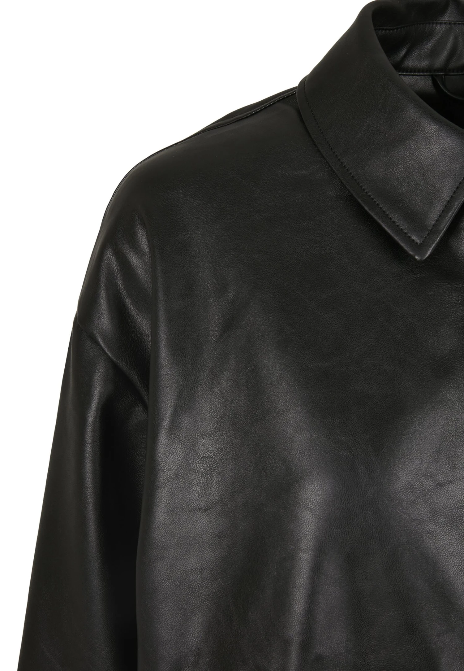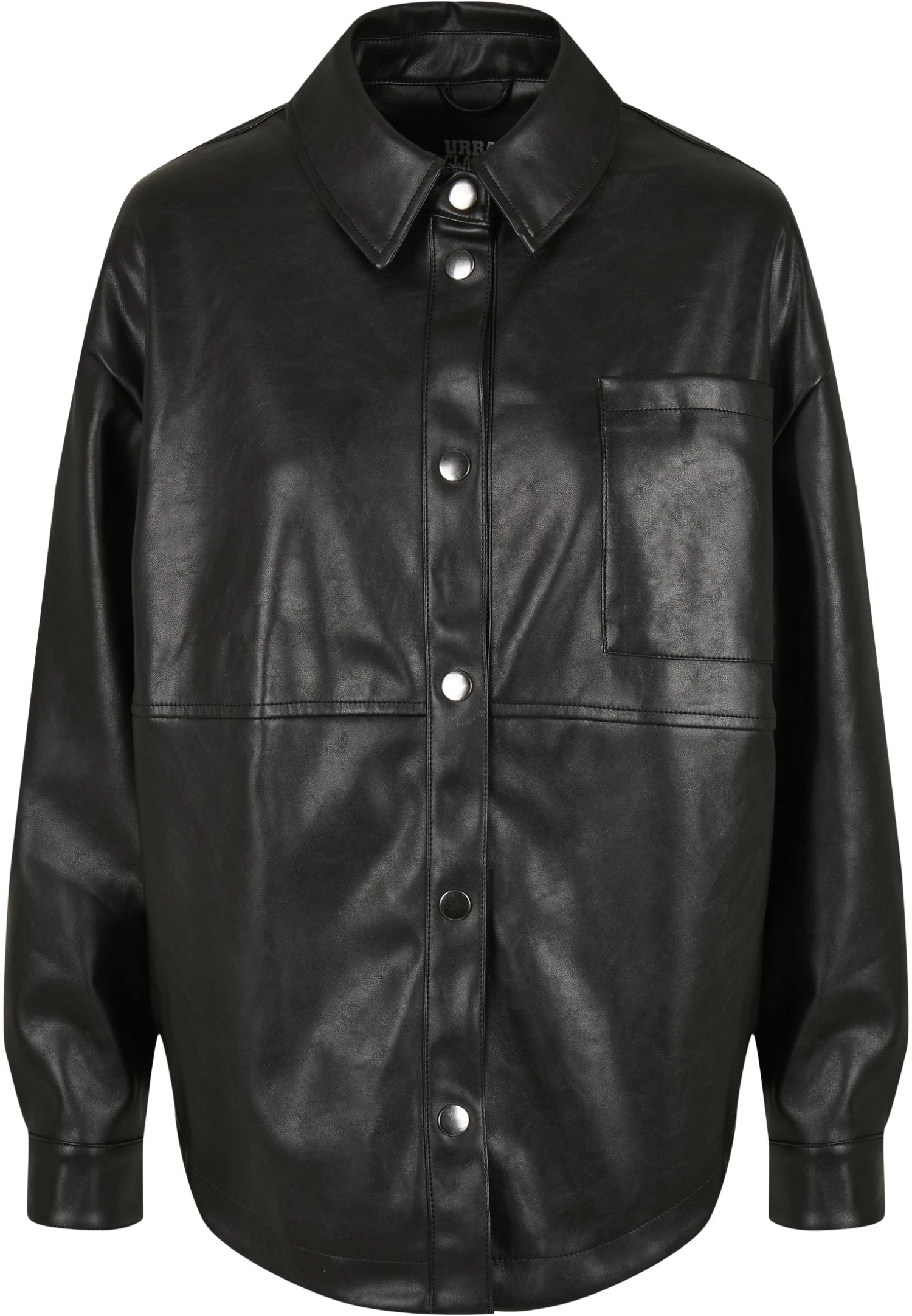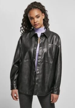 URBAN CLASSICS Ladies Faux Leather Overshirt – Imitatieleren Jas – Black