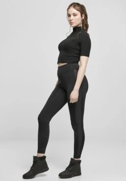 URBAN CLASSICS Ladies Highwaist Shiny Stripe Leggings – Legging – Black/Black