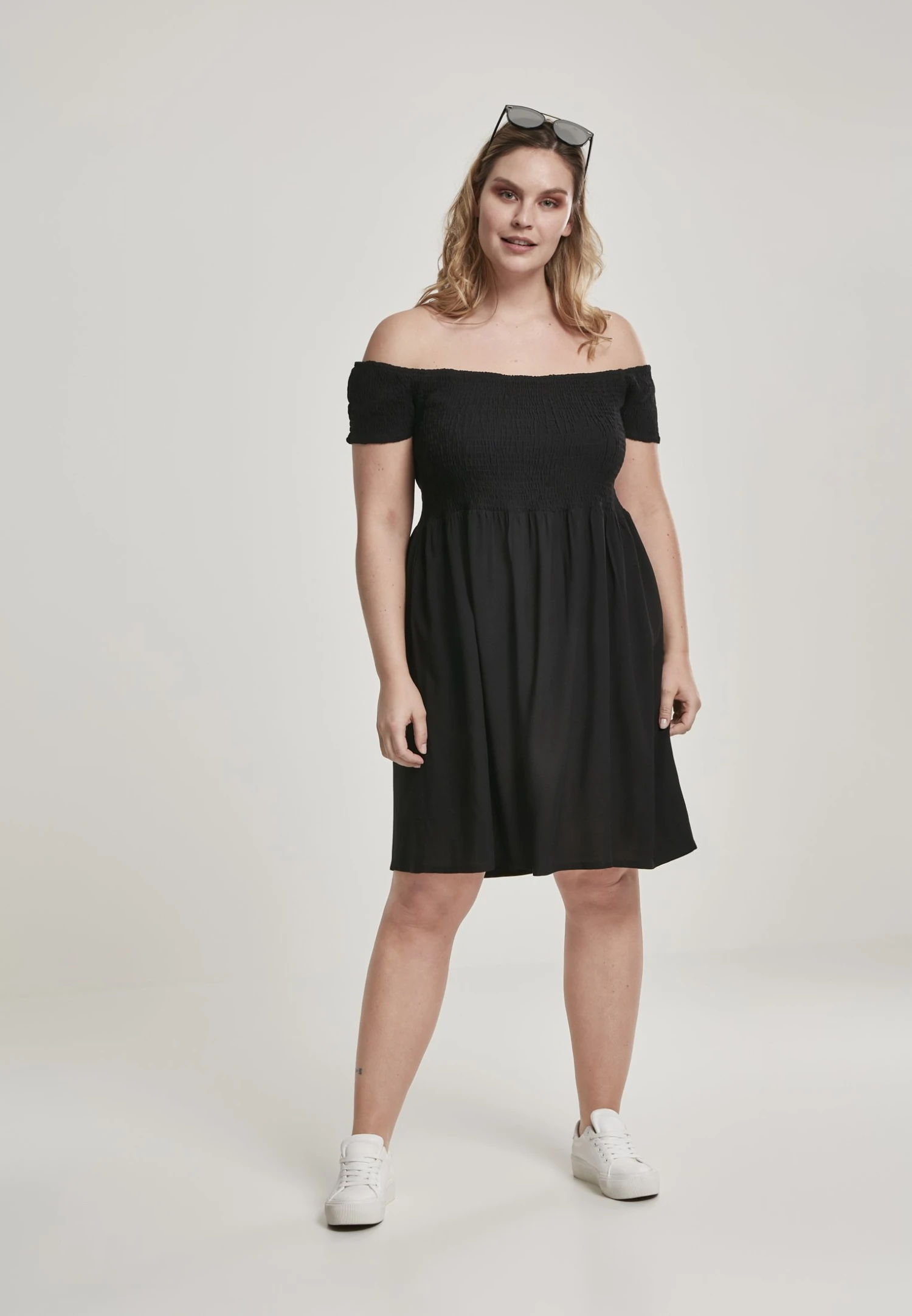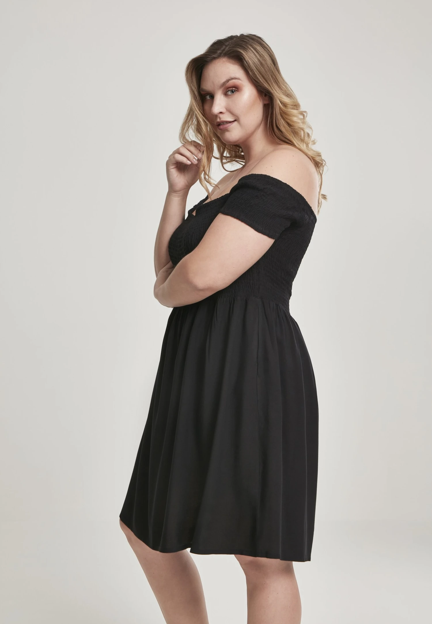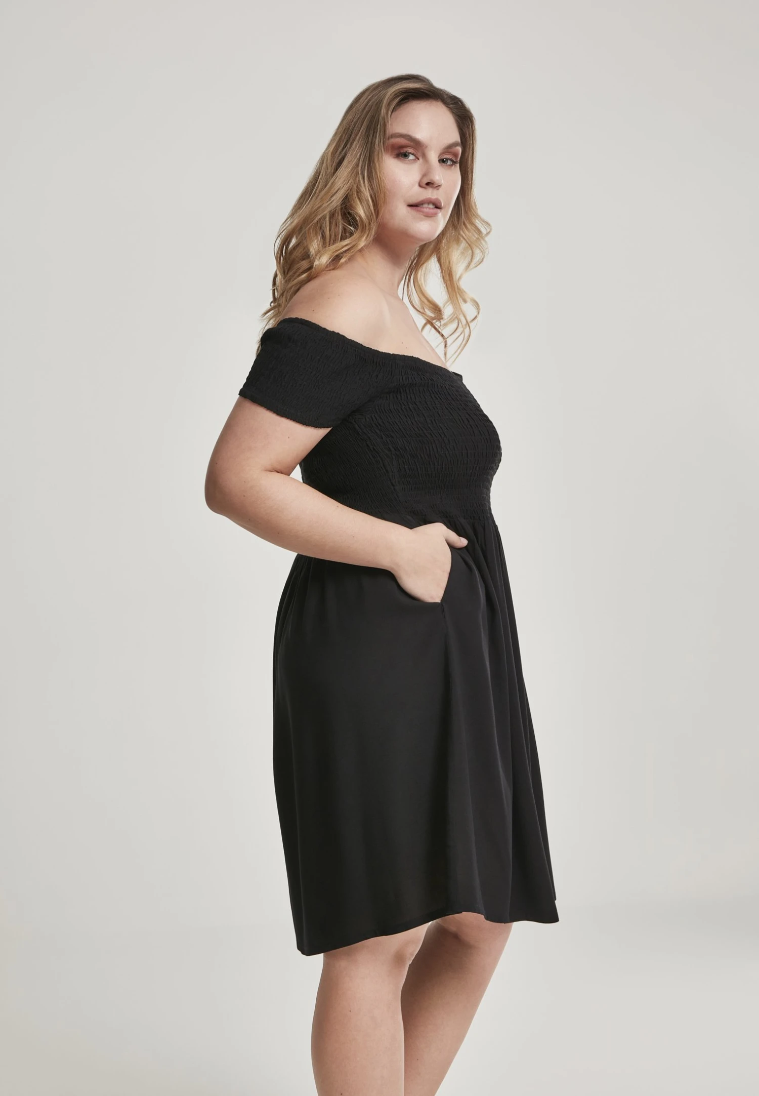 URBAN CLASSICS Ladies Smoked Off Shoulder Dress – Jurk – Black