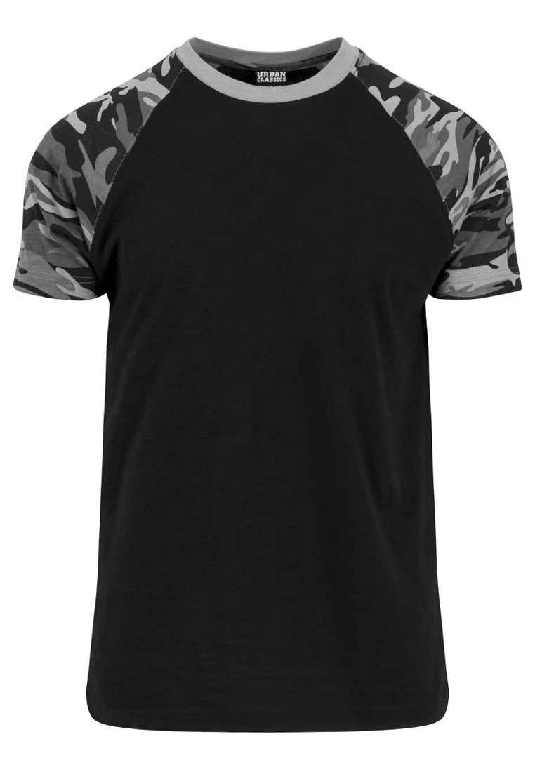 URBAN CLASSICS Raglan Contrast- T-Shirt Print – Black/ Grey